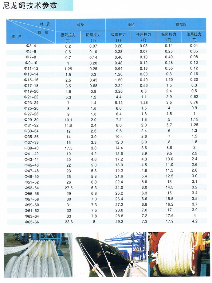 尼龍繩使用過(guò)程中的保養(yǎng):幾種對(duì)繩子有危害的行為:不能爆曬(怕熱),酸性腐蝕(堿),放在汽車(chē)后備箱里拉來(lái)拉去等(以上行為除酸堿腐蝕外并非絕對(duì))。繩子的清潔:可以用清水(中性或者專(zhuān)用洗滌液)洗滌后平攤在地上陰干;使用過(guò)程中避免硬物砸傷;雖然踩踏不會(huì)給繩子帶來(lái)傷害也應(yīng)避免。