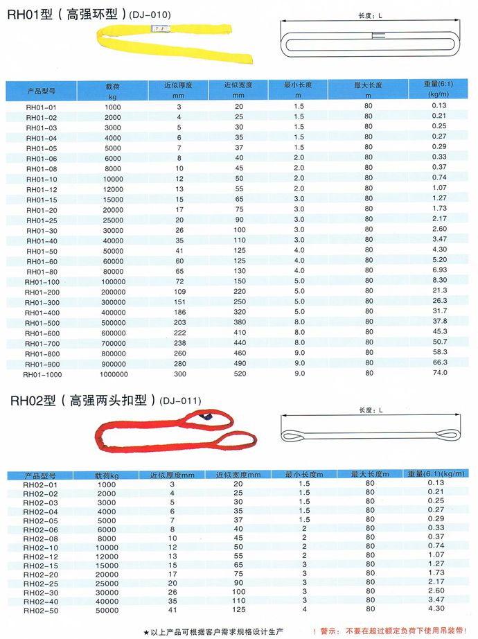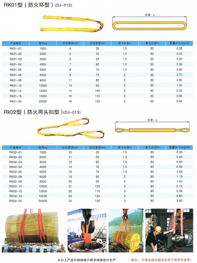 柔性吊裝帶不導(dǎo)電,無(wú)觸電危險(xiǎn),柔性吊裝帶是采用PES制成,內(nèi)部承載芯采用無(wú)極環(huán)繞以構(gòu)成循環(huán)狀PES織成不受力的套管對(duì)承載芯加以保護(hù)。柔性吊裝帶外表面光滑,對(duì)平滑的物體不會(huì)造成損傷,對(duì)易損物體不會(huì)造成損傷,適用于圓環(huán)形物體的吊裝,柔性吊裝帶負(fù)荷0.5-500噸,有效長(zhǎng)度0.5-80米,符合中國(guó)行業(yè)標(biāo)準(zhǔn)JB/T8521-2007 ,柔性吊裝帶的彈性伸長(zhǎng)較小,工作載荷下< 2%,斷裂載荷下<12% 14、使用的溫度范圍—40℃—180℃。