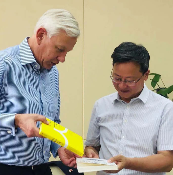 值得一提的是,鮑達(dá)民先生在擔(dān)任駐華大使以前還曾擔(dān)任清華大學(xué)經(jīng)管學(xué)院的首位管理實(shí)踐杰出客座教授和清華大學(xué)經(jīng)管學(xué)院的顧問委員會(huì)委員。曾在清華經(jīng)管學(xué)院、牛津大學(xué)商學(xué)院和其他全球知名商學(xué)院開展領(lǐng)導(dǎo)力講座,并曾參與合著四本著作,涉及財(cái)務(wù)管理和領(lǐng)導(dǎo)力等主題。高光勇董事長閱讀過其中的部分著作。在交流中,鮑達(dá)民大使欣然在其所著、高光勇董事長閱讀過的兩本著作上簽名并為高光勇董事長贈(zèng)言,勉勵(lì)山外山公司打造全球一流血透品牌,造福全世界腎病患者,座談會(huì)在一陣歡聲笑語中圓滿結(jié)束。